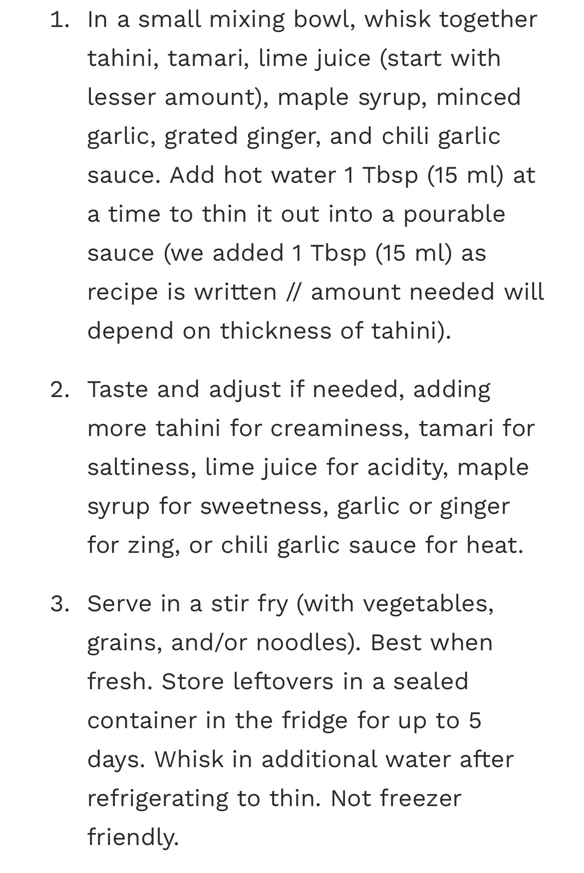 I’m hoping I’ll love this tofu and have to go back regularly. My current stir fry recipe of choice stars a Tahini Stir Fry Sauce from the Minimalist Baker. I HIGHLY recommend this recipe. It is the absolute bomb! If this doesn’t make the tofu palatable for me nothing will! š
