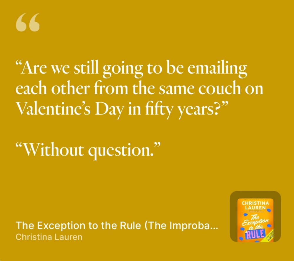 Christina Lauren’s The Exception to the Rule is part of The Improbable Meet-Cute, irresistibly romantic stories about finding love when and where you least expect it. They can be read or listened to in one sitting.