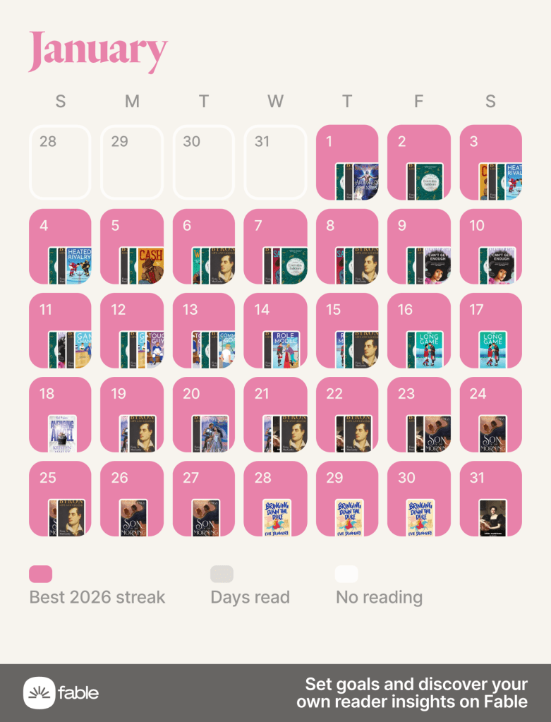 Oh boy am I behind with 2026 posting! As is evidenced by my posting my January wrap up in March! I’ve lots of excuses, my being sucked into the Heated Rivalry fandom is chief among them. I shall also blame my January non-fiction review, I got really in my head about it and it delayed things exponentially. So my plan is just to bang out the eight (EIGHT) posts that I’m behind on. Things won’t look pretty but at least I’ll be caught up!